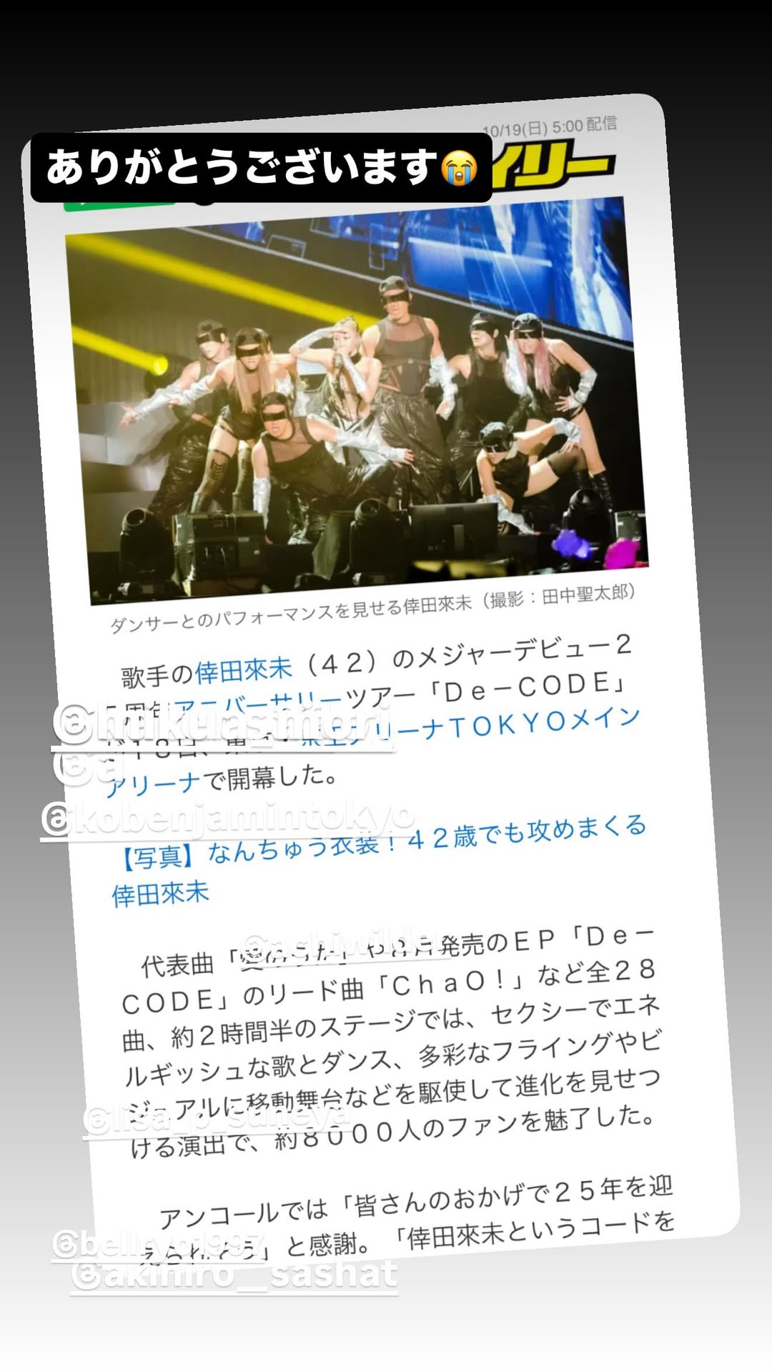 The figure that holds hands with the fans who supported the most difficult time and sings high-pitched sound is exactly the diva. I thought it was a suitable performance for the program ?* :゚